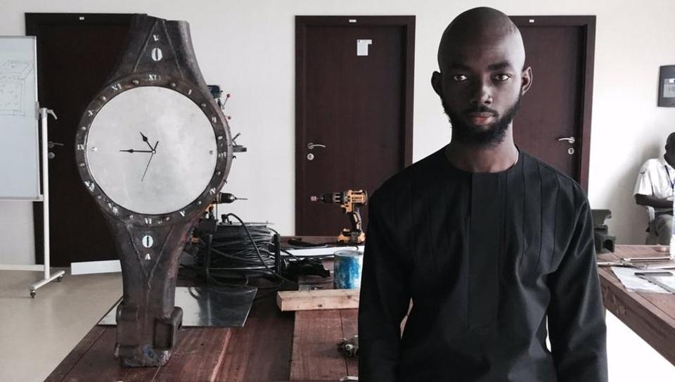 Awuah-Darko’s first piece of work is a grandfather clock, made from a galvanized car axle, aluminium and part of a discarded wall clock. Two hotels in Accra are in a bidding war, each hoping to win ownership of the clock.